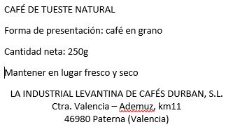 Café Durbán Gourmet en grano (250 gr)