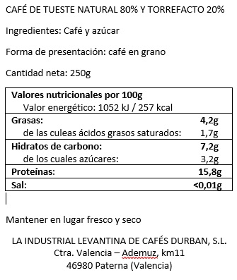 Café Durbán Natural en grano (250 gr)