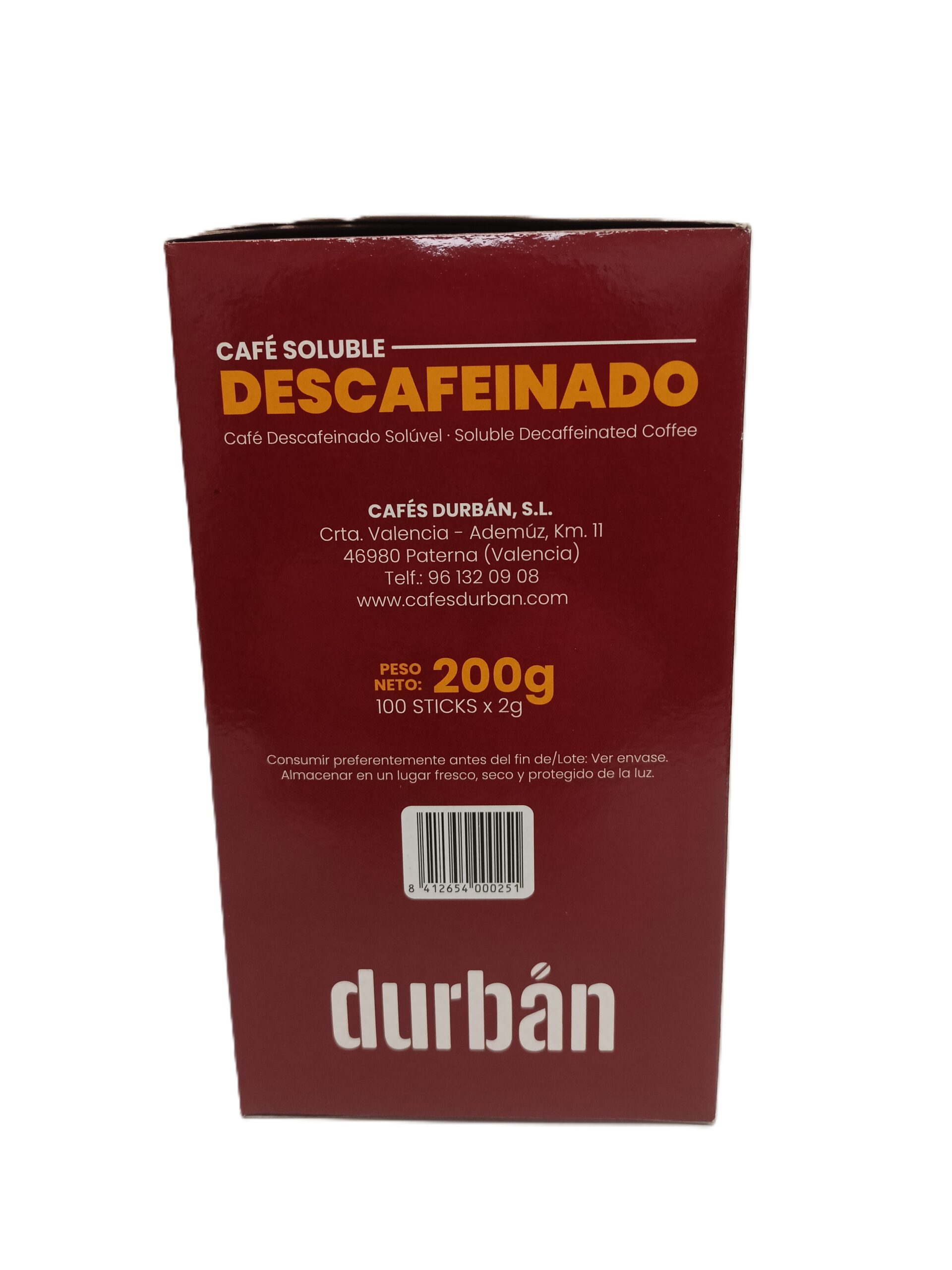 Caja Café Durbán soluble Descafeinado formato tubo (100 unidades)