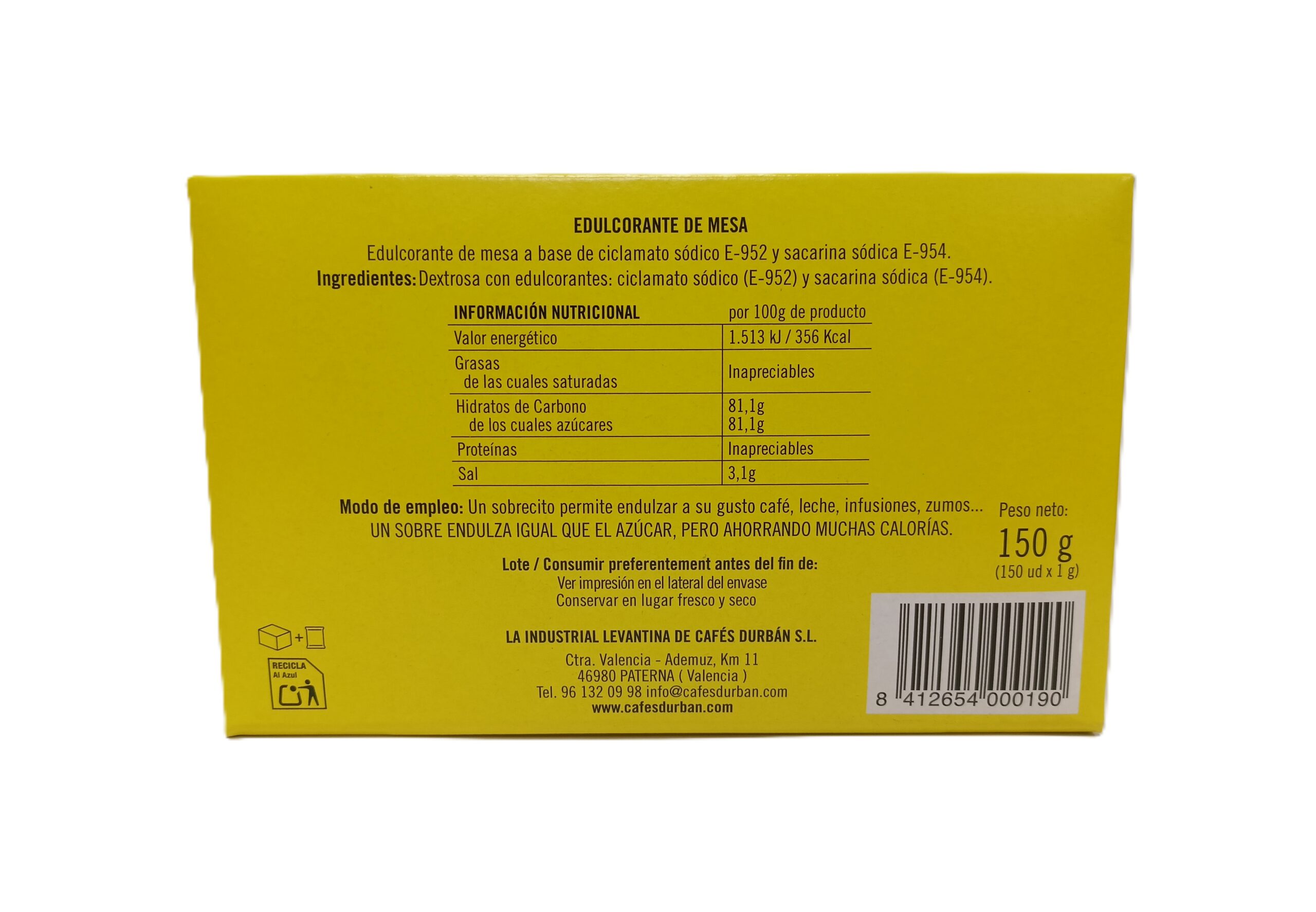 Caja Sacarina sobre Durbán (150 unidades)