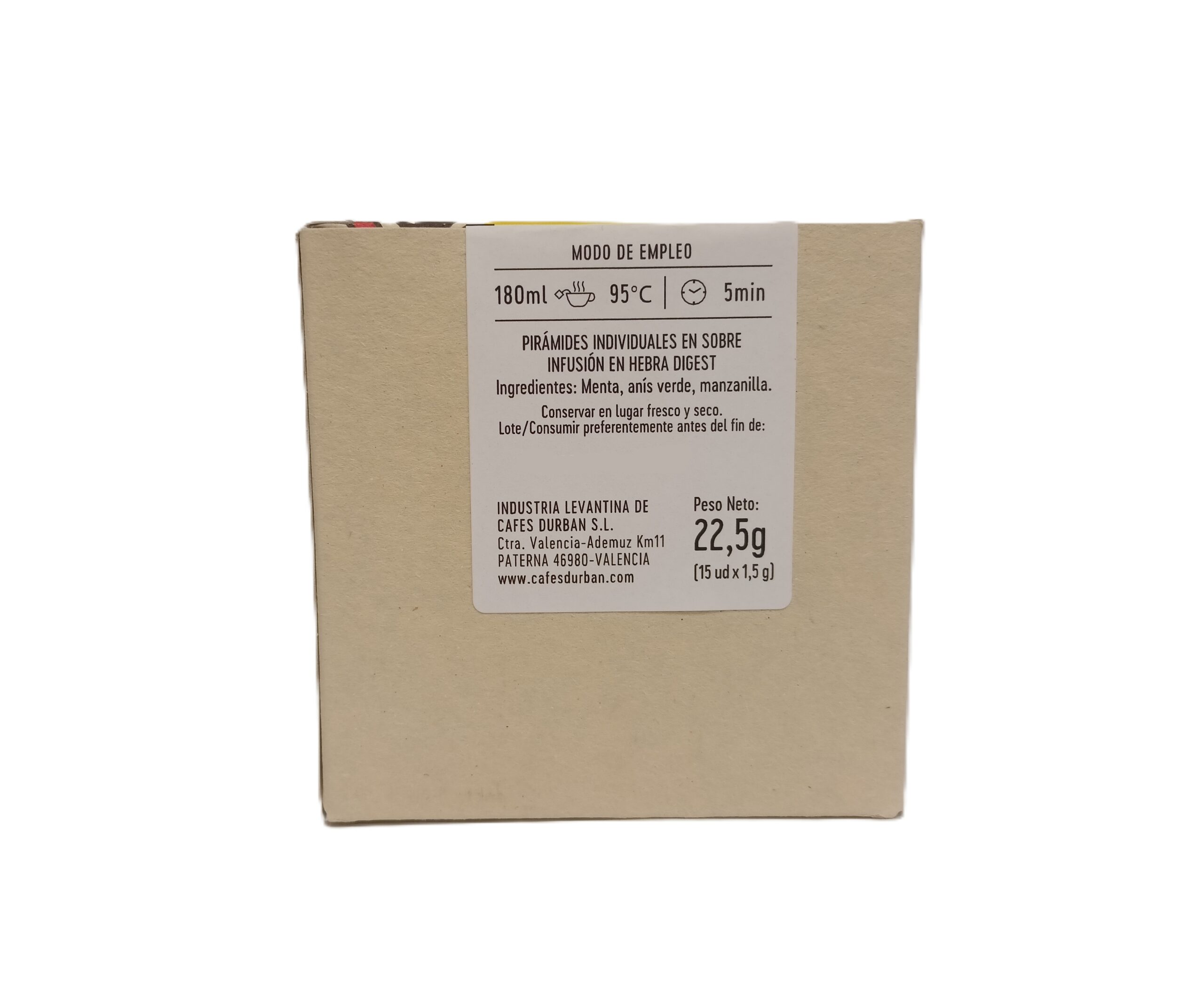 Infusión de aroma muy agradable. A base de anís, hierba luisa, menta, manzanilla y regaliz, ideal para la sobremesa, también la puedes pedir con unas gotitas de anís. Contiene regaliz: las personas que padezcan hipertensión deben evitar un consumo excesivo.